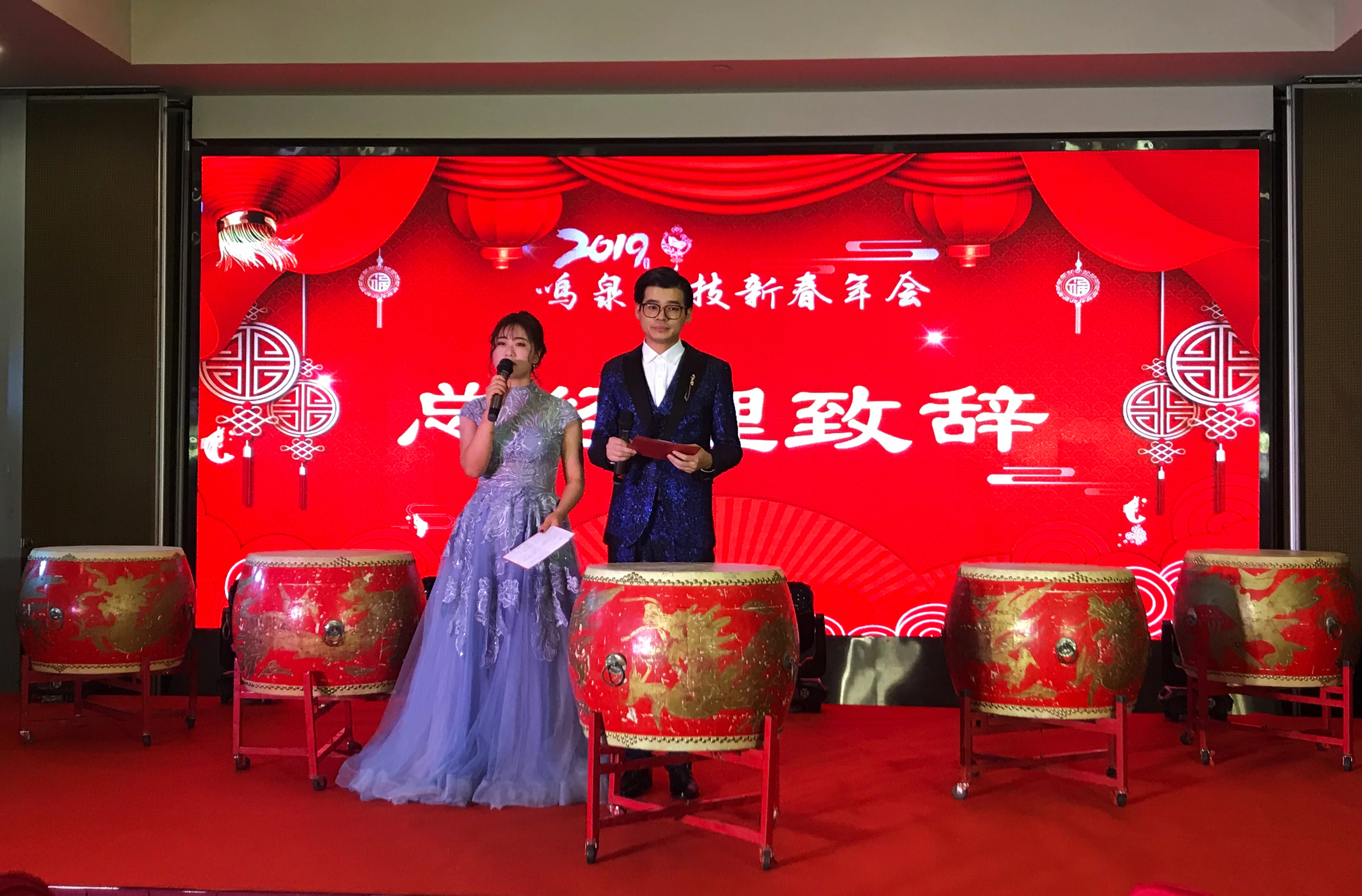15:28分,一段震撼全场的威风锣鼓正式拉开了年会的序幕。